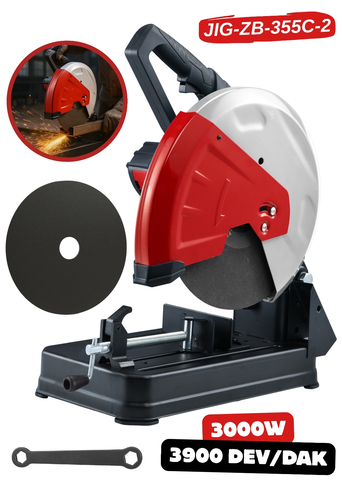 RETOOLS JIG-ZB-355C-2 Profil Kesme Makinesi, demir, çelik, boru, profil ve tüm metal malzemeleri hızlı ve güçlü bir şekilde kesmek için geliştirilmiş profesyonel bir kesim makinesidir. 3000W yüksek motor gücü ve 3900 devir/dakika kesim hızı ile hem bireysel kullanıcılar hem de endüstriyel atölyeler için mükemmel performans sunar.