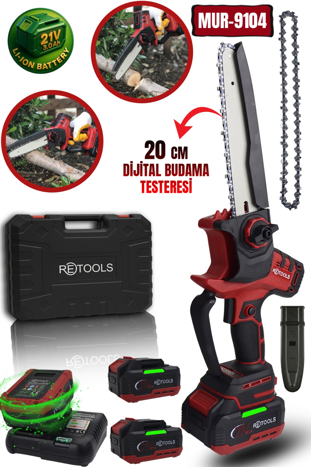 RETOOLS MUR-9104 21V Akülü Dijital Budama Testeresi | 20 cm | 2 Bataryalı